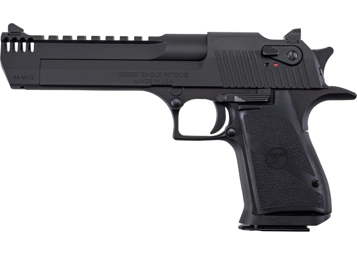 Słynny na całym świecie pistolet Desert Eagle w czarnym wykończeniu (Black MBI) zaprojektowany w 1979 roku przez amerykańska firmę Magnum Research, Inc.