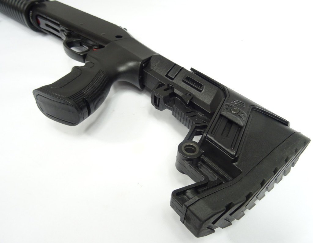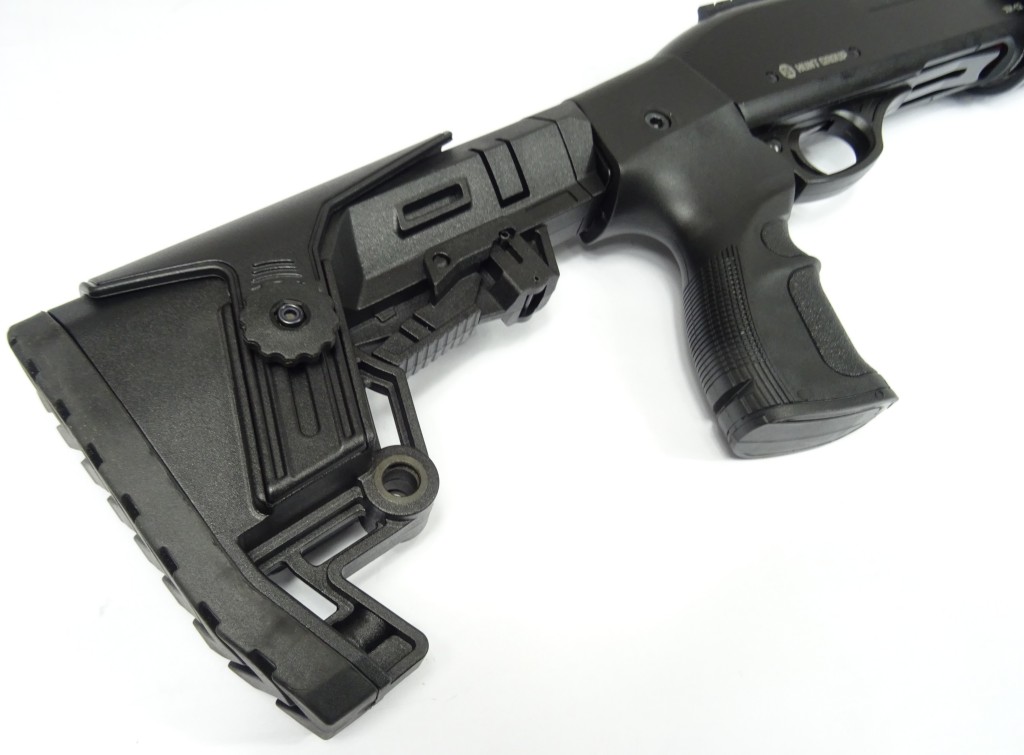 Kolor czarny, kolba i czółenko polimer, chwyt pistoletowy, kompensator, kolba regulowana.